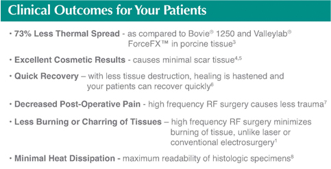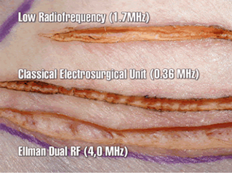 與傳統的"電刀"相比較,ellman?射頻技術僅產生他們1/3的側向熱損傷變形