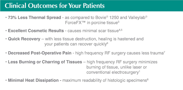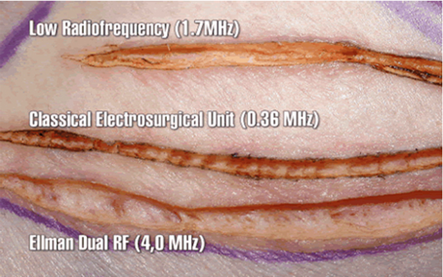 5、無炭化-射頻手術(shù)設(shè)備更小化燒傷組織,不像激光及傳統(tǒng)電外科設(shè)備。