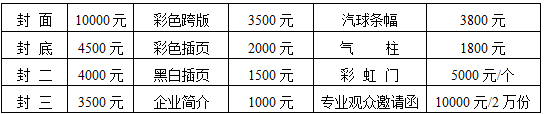 3、技術講座提供講座場地、照明、音響、桌椅、飲水、投影儀,不包含會場布置或其他特別安排的費用。會刊及展會現場廣告:不論您參加展會或未參展,均可通過以下形式發布廣告: