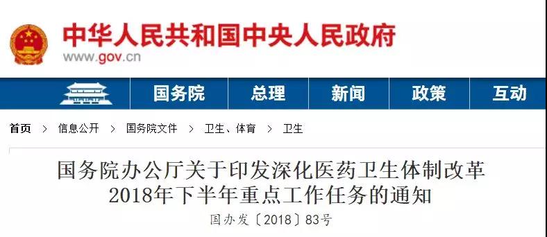 8月28日,中國(guó)政府網(wǎng)發(fā)布《深化醫(yī)藥衛(wèi)生體制改革2018年下半年重點(diǎn)工作任務(wù)》(以下簡(jiǎn)稱《任務(wù)》)。要點(diǎn)如下: