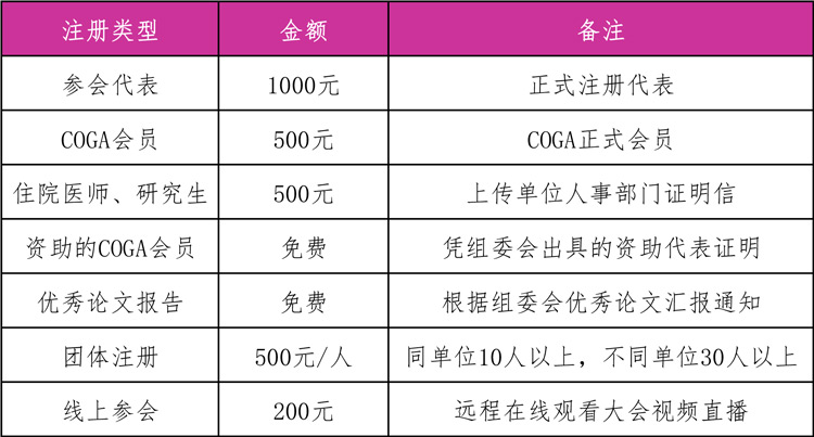 本次大會將資助100名邊遠基層醫院COGA會員參加本次會議,免會議注冊費,提供交通、會議期間住宿與餐飲。申請者必須同時滿足以下條件: