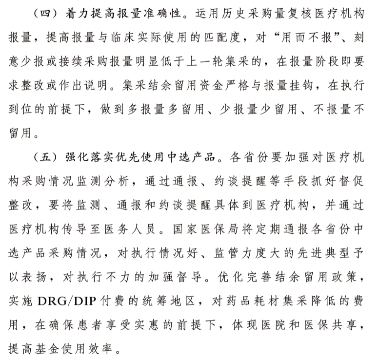 要著力提高報量準確性。運用歷史采購量復核醫療機構報量,提高報量與臨床實際使用的匹配度,對“用而不報”、刻意少報或接續采購報量明顯低于上一輪集采的,在報量階段即要求整改或作出說明。集采結余留用資金嚴格與報量掛鉤,在執行到位的前提下,做到多報量多留用、少報量少留用、不報量不留用。