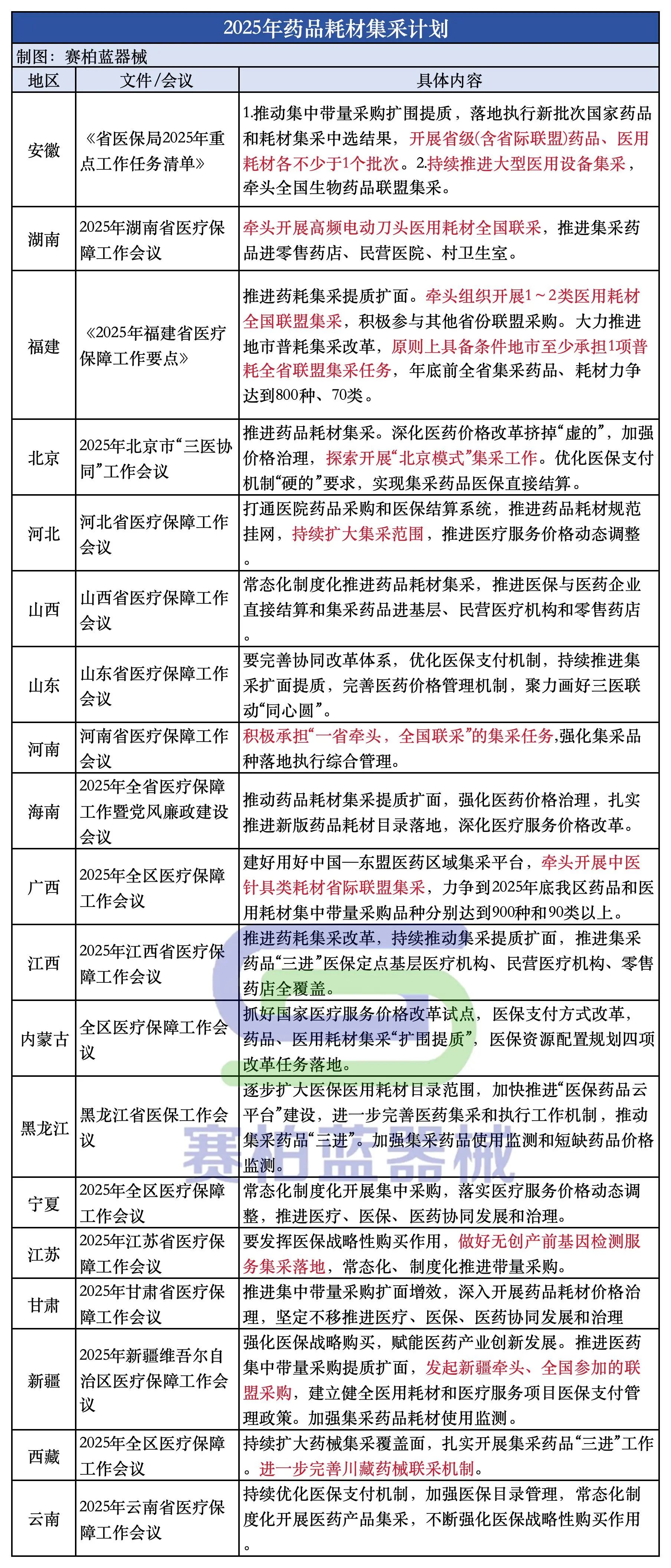 截止目前,全國大部分省份已召開2025年醫(yī)保工作會議,部分省份發(fā)布2025醫(yī)保工作要點。集采“提質(zhì)擴面”被反復(fù)提及,新的耗材集采項目陸續(xù)公布。