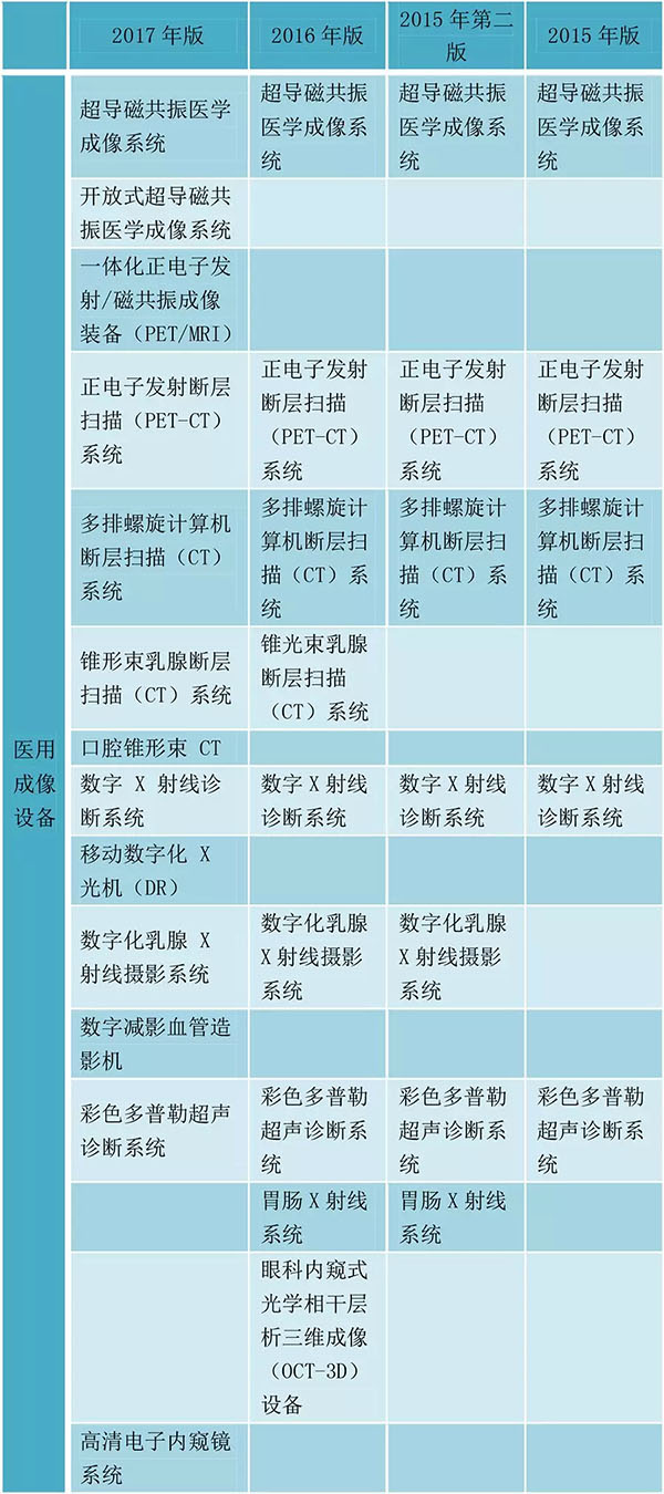 2015年版納入目錄的尚只有8種醫(yī)療裝備產(chǎn)品,2015年第二版增加到11種,2016年版增加到21種,2017年版則又增加到了32種。