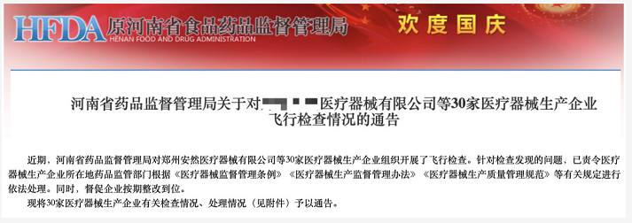 近日,河南省藥品監督管理局對30余家醫療器械有限公司和醫療器械生產企業組織開展了飛行檢查。
