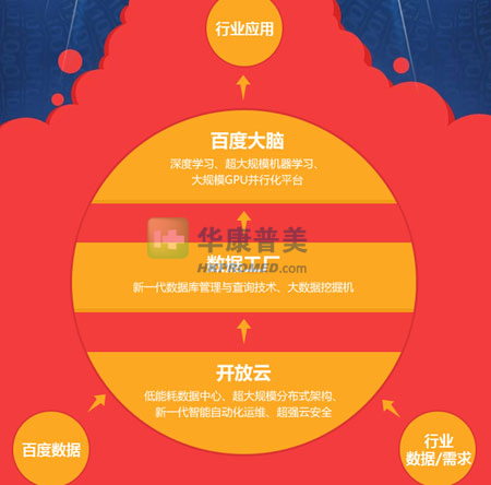 開放云指的是這套引擎的基礎架構——分布式的低能耗數據中心,也就是前文提到的硬件部分。其中包括數據中心的服務器設計、數據中心規劃和設計、分布式系統、超大規模集群自動化運維、大規模GPU并行化平臺等。其次是數據工廠,它可以支持超大規模的異構數據查詢和大數據分析,也就是調用硬件,來完成數據的挖掘和分析。而百度大腦,其實是對單集群規模數據能力的擴展——基于深度學習技術,讓機器模擬人類大腦多層神經元的思維模式做出預測模型。