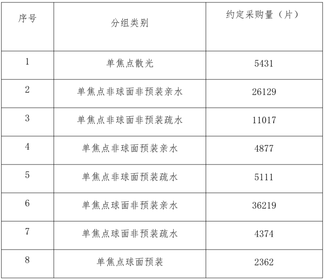 根據《河南省醫用耗材集中帶量采購文件》顯示,約定采購量根據參與集中采購的醫療機構上報的2019 年總采購量 70%確定,對95520個人工晶體進行帶量采購。