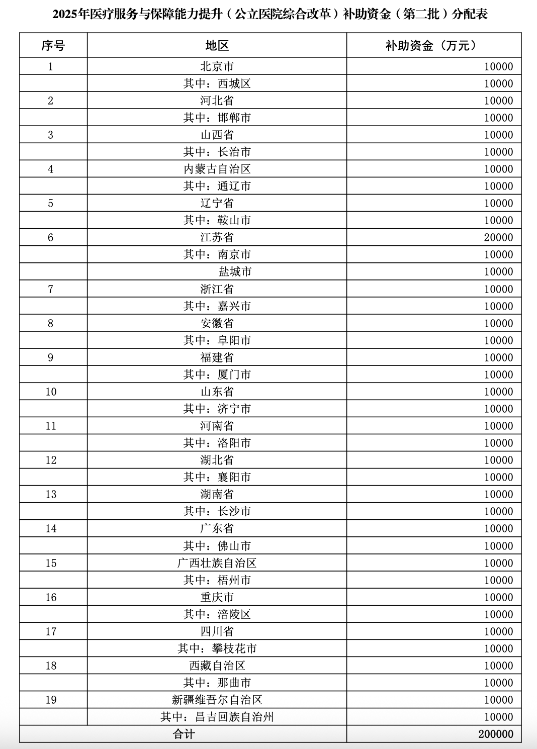 8月20日,財政部發布《財政部國家衛生健康委關于下達2025年醫療服務與保障能力提升(公立醫院綜合改革)補助資金(第二批)預算的通知》。