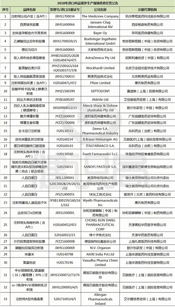 這周四,也就是2018年1月4日,CFDA將在北京召開藥品境外檢查工作企業(yè)通氣會,拜耳、輝瑞、默沙東、艾伯維、勃林格殷格翰等外資藥企的33個藥品,被納入2018年CFDA境外“飛檢”計劃,其中包括注射用替加環(huán)素(泰閣)等王牌藥品,也有四價人乳頭瘤病毒疫苗(佳達(dá)修)等今年剛過審批在中國上市的明星藥品,還包括一些已經(jīng)納入優(yōu)先審評“綠色通道“,即將在中國上市的藥品。