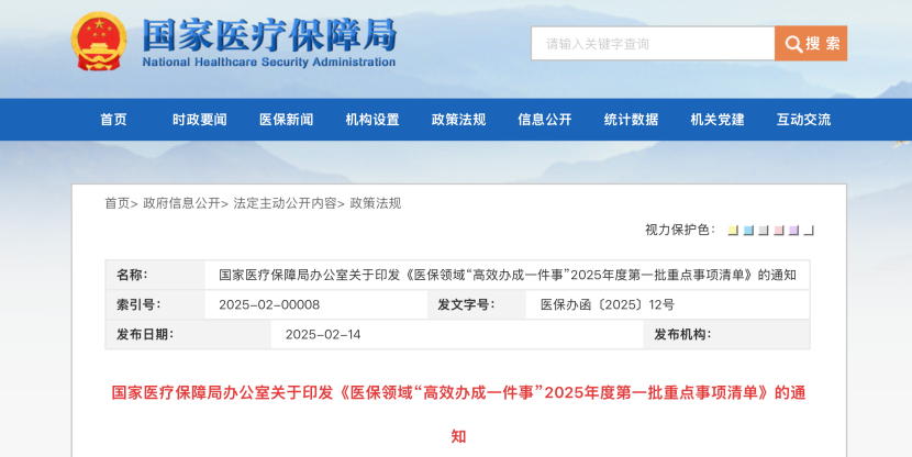 2月14日,國家醫保局辦公室發布《醫保領域“高效辦成一件事”2025年度第一批重點事項清單》(以下簡稱《清單》),其中涉直接結算、即時結算、產品掛網全國聯審通辦等內容。