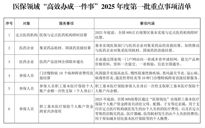 《清單》中明確,醫保與定點醫藥機構即時結算,2025年底前,全國80%左右統籌區基本實現與定點醫藥機構即時結算。