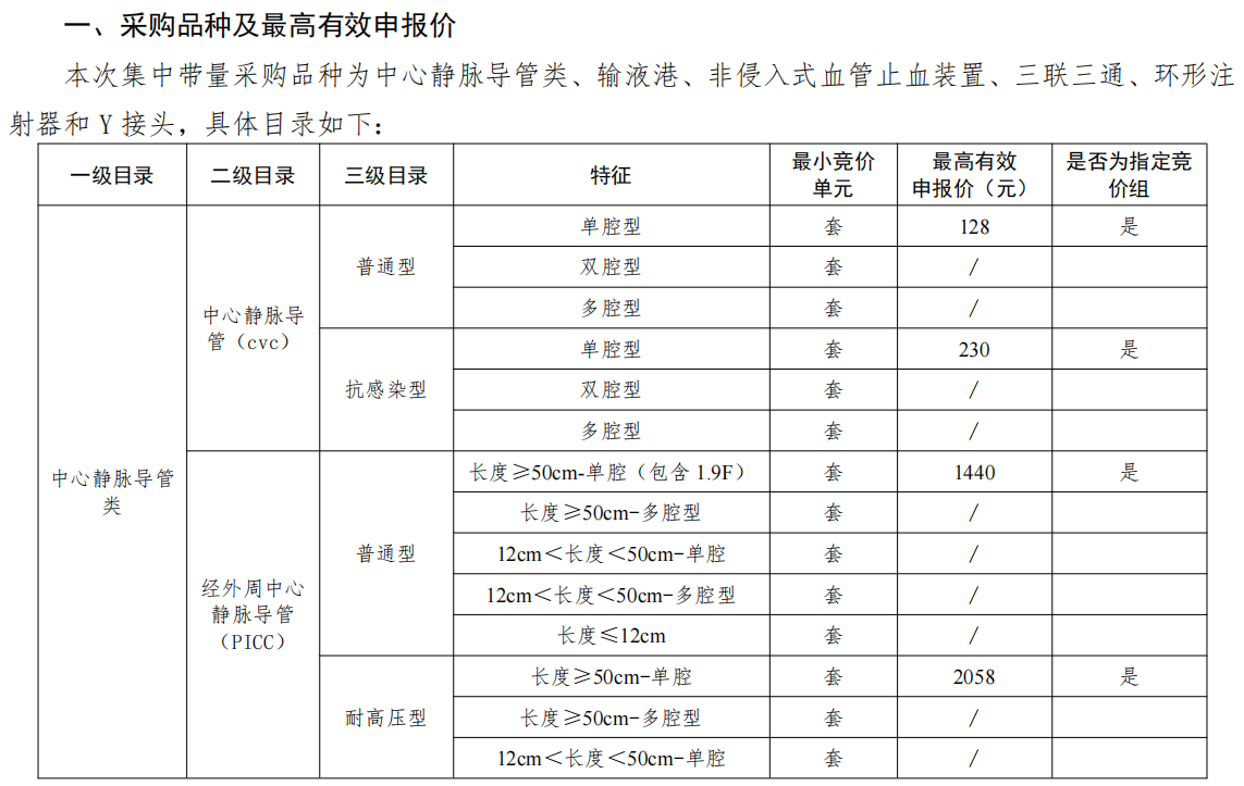 本次《公告》還發布了四份耗材帶量采購文件,分別為:《中心靜脈導管類等醫用耗材省際聯盟帶量采購文件》《造影導管等醫用耗材省際聯盟帶量采購文件》《顱骨鎖等醫用耗材省際聯盟帶量采購文件》《動脈瘤夾等醫用耗材省際聯盟帶量采購文件》。