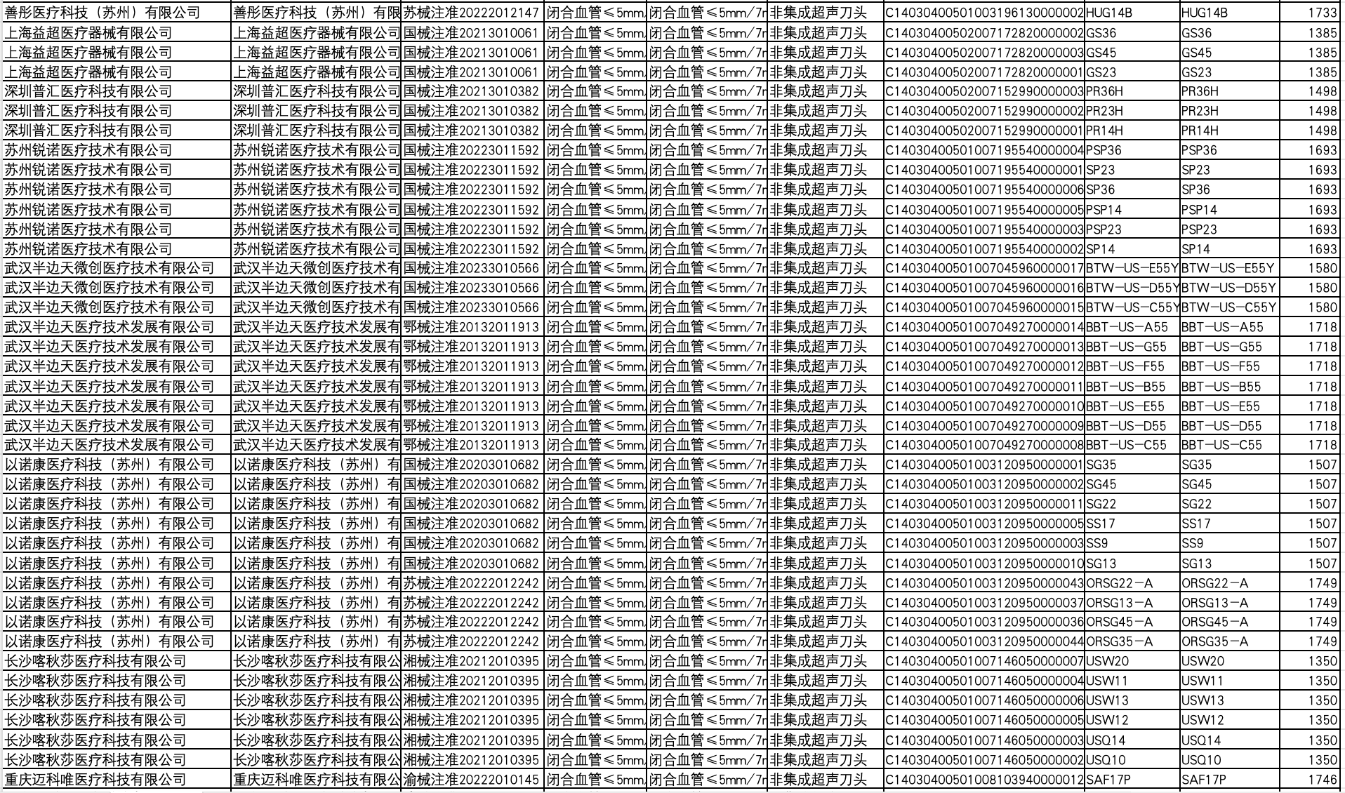 公示內容顯示,閉合血管≤3mm的超聲刀頭最低價已降至536元,閉合血管≤5mm/7mm的超聲刀頭最低價降至720元。