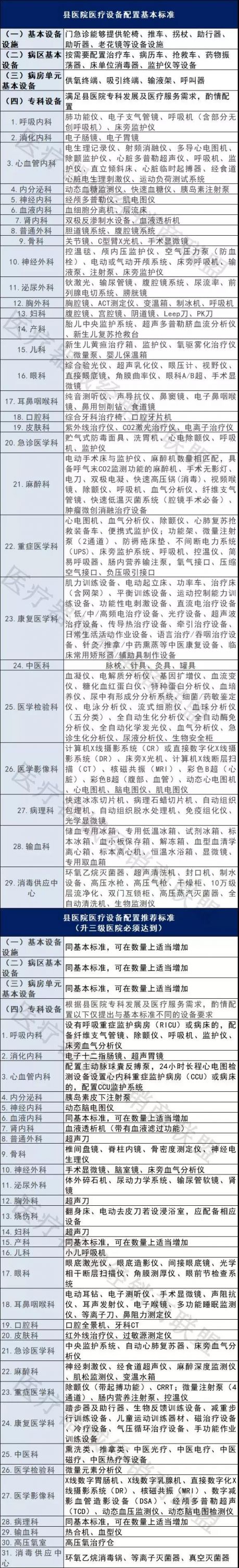國家衛健委曾發布《鄉鎮衛生院服務能力評價指南(2019年版)》和《社區衛生服務中心服務能力評價指南(2019年版)》,其中公布了全國3.6萬鄉鎮衛生院和3.5萬社區衛生服務中心最新版的醫療設備配置標準。