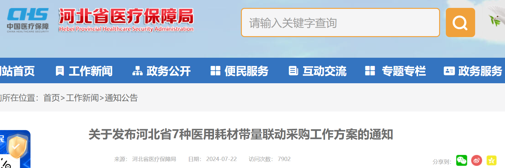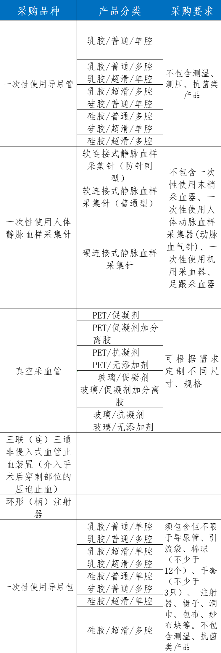上述7類耗材的采購周期均為兩年,河北省公立醫療機構和軍隊醫療機構作為醫用耗材采購主體均應參加,采購品種如下: