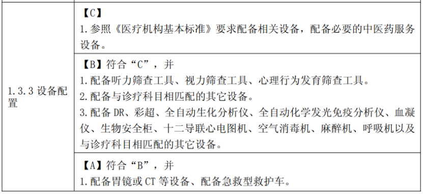 設備配置方面,《方案》還特別提到,要逐步改善硬件設施設備條件,結合專科發展需求,系統完善發熱門診、急診醫學科、住院部、醫技科室等業務用房條件,加快數字健康基礎設施建設,改善醫療、信息化等設備和醫用車輛配置,改善停車、醫用織物洗滌、醫療廢物和污水處理等后勤保障設施。