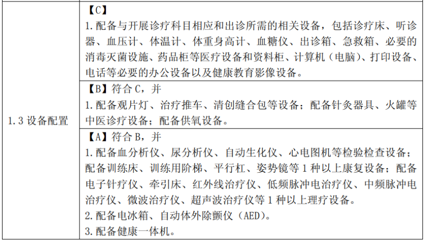 去年7月,國家衛健委還印發了《鄉鎮衛生院服務能力標準(2022版)》《社區衛生服務中心服務能力標準(2022版)》和《村衛生室服務能力標準(2022版)》,其中對設備配置提出要求。