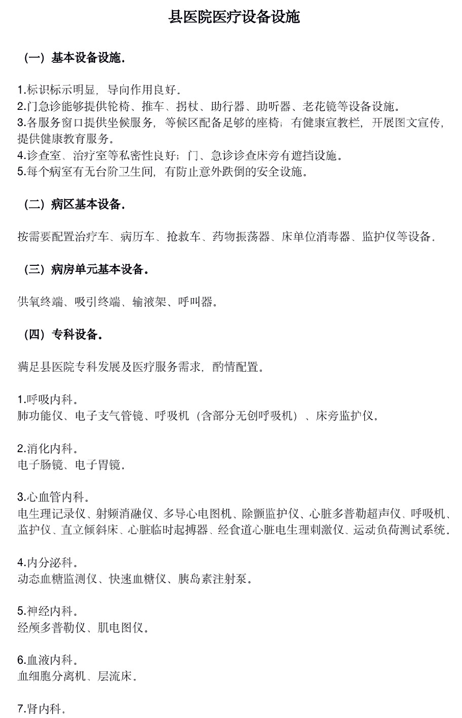 附:《縣醫院醫療設備設施基本標準》