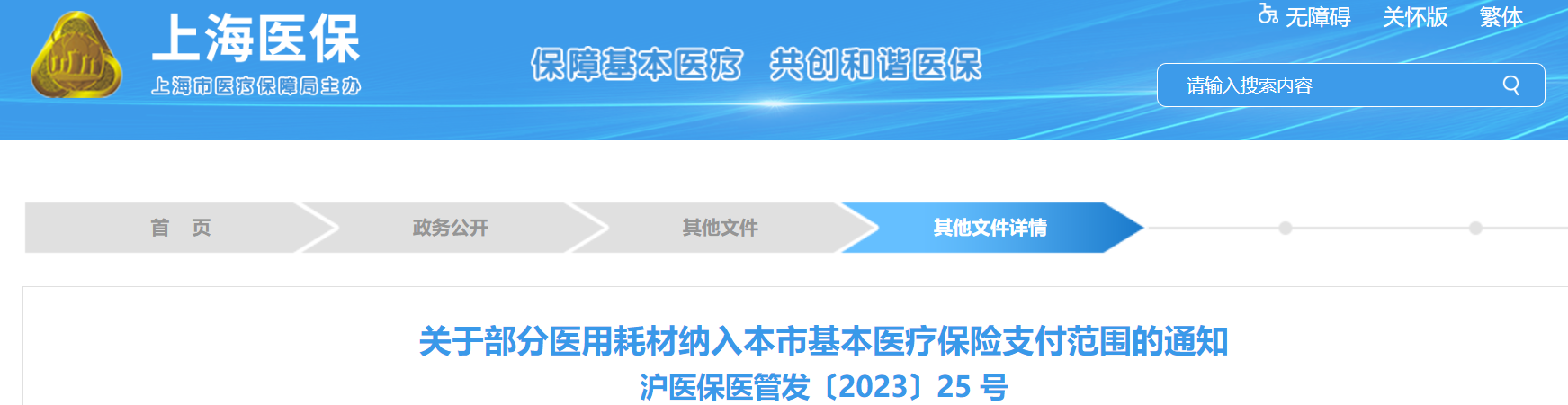 近日,上海醫保局發布《關于部分醫用耗材納入本市基本醫療保險支付范圍的通知滬醫保醫管發〔2023〕25 號》的文件,自10月日起,將“人工間盤及配件”等60個醫用耗材條目新納入上海市基本醫療保險支付范圍(名單見文末)。
