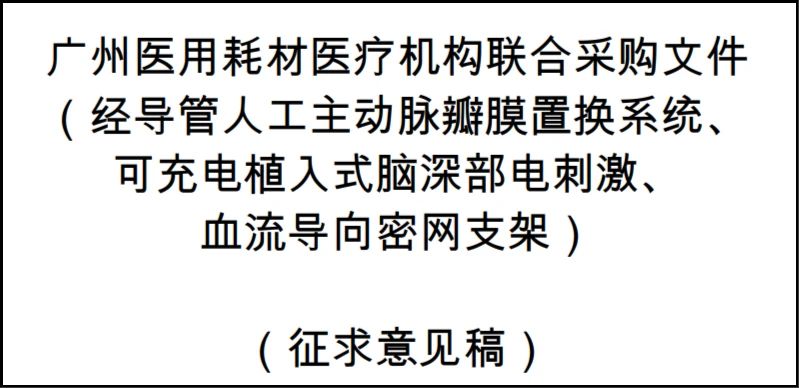 12月13日,廣東省廣州公共資源交易中心發布《廣州醫用耗材醫療機構聯合采購文件(經導管人工主動脈瓣膜置換系統、可充電植入式腦深部電刺激、血流導向密網支架)(征求意見稿)》。