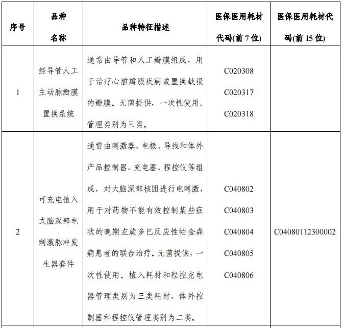 采購品種為已獲得國家醫保醫用耗材代碼的經導管人工主動脈瓣膜置換系統、可充電植入式腦深部電刺激、血流導向密網支架等三類醫用耗材。具體如下: