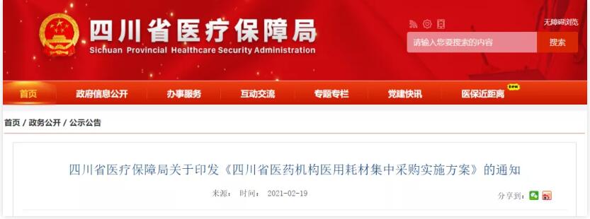2月19日,四川省醫(yī)保局發(fā)布《四川省醫(yī)藥機(jī)構(gòu)醫(yī)用耗材集中采購實(shí)施方案》(下稱《實(shí)施方案》)。