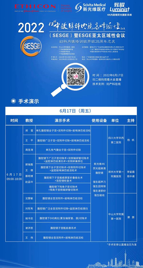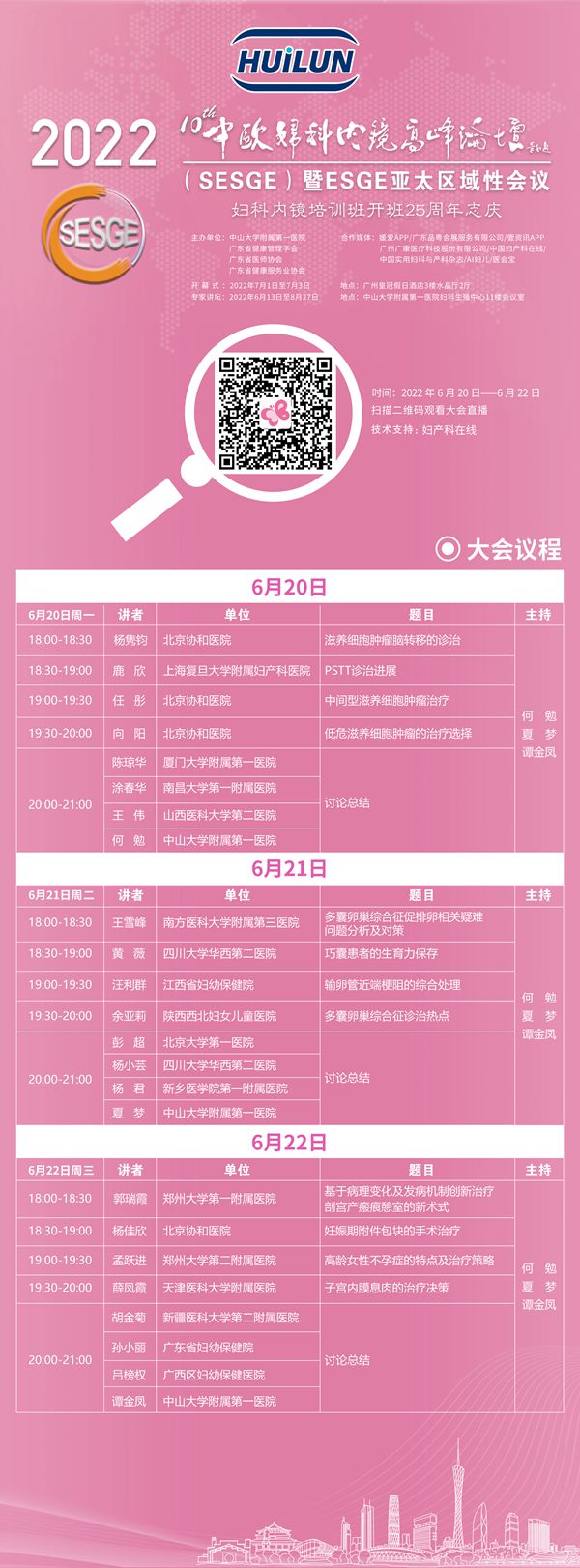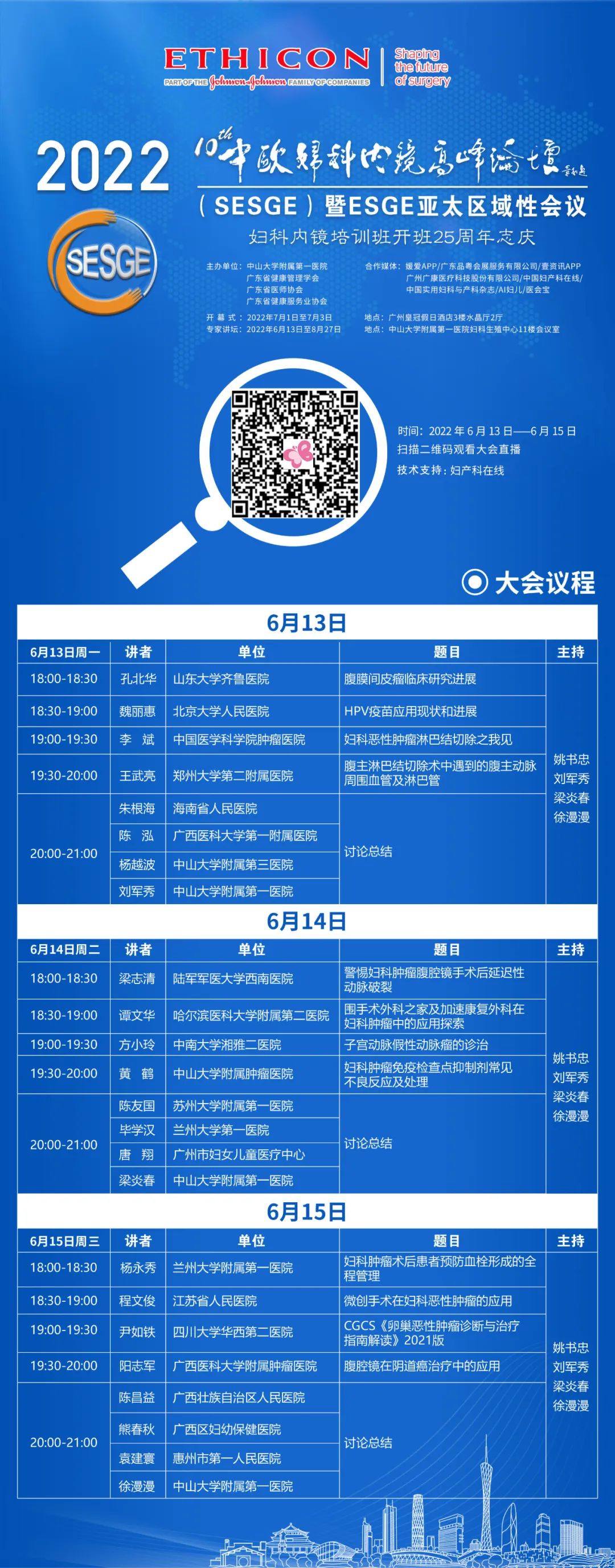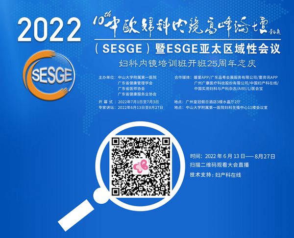 為更好地推動婦科微創(chuàng)手術(shù)的發(fā)展,促進(jìn)業(yè)界深入廣泛交流,由中山大學(xué)附屬第一醫(yī)院主辦的“第十屆中歐婦科內(nèi)鏡高峰論壇(SESGE)”定于2022年6月13日至8月27日召開,由于受新冠肺炎疫情影響,本次會議采用線上線下相結(jié)合的方式舉辦。