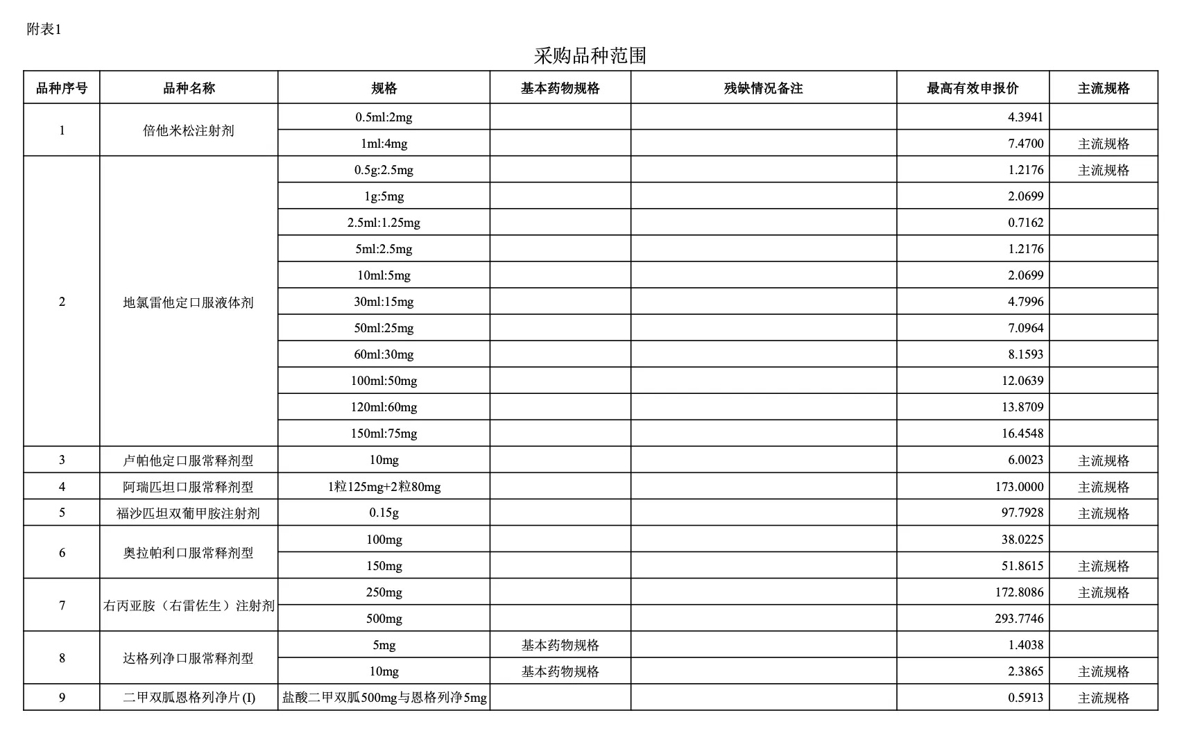 附:采購品種范圍