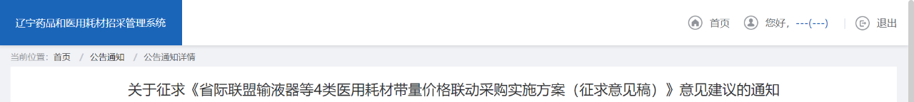 9月6日,遼寧省醫療機構藥品和醫用耗材采購聯盟發布《省際聯盟輸液器等4類醫用耗材帶量價格聯動采購實施方案(征求意見稿)》(完整附文末)。