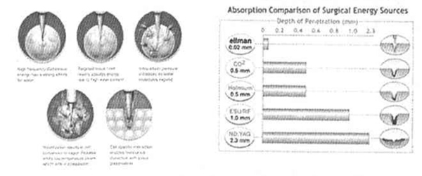 Ellman射頻機通過發射極傳出的高頻電波可以在沒有壓力的情況下,對組織產生光滑精細的切口、或時組織收縮、或使組織汽化。我們可以通過改變電波的形狀和能量強度來達到切割、凝血、汽化、消融等效果。我們把采用ellman射頻機利用電波實施的手術統稱為ellman射頻手術技術。