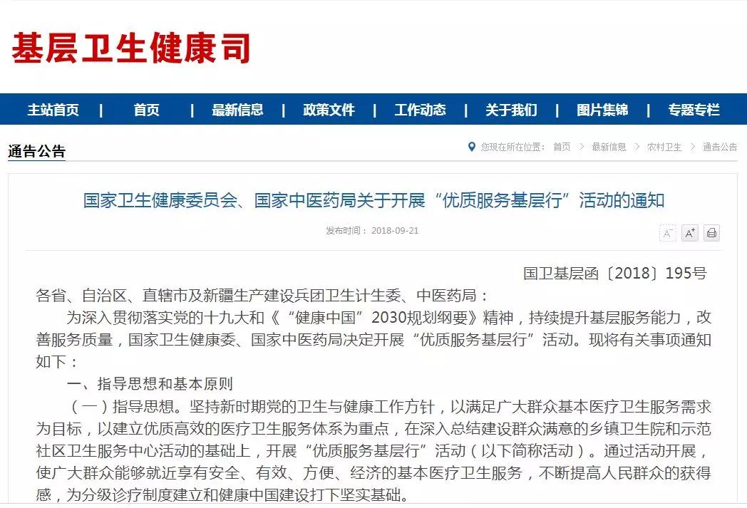 9月21日,國家衛健委基層衛生健康司發布《國家衛生健康委員會、國家中醫藥局關于開展“優質服務基層行”活動的通知》(以下簡稱《通知》)。明確指出要重點發展基層醫療,提升鄉鎮衛生院及社區衛生服務中心的醫療服務水平,其中完善服務能力是重中之重。