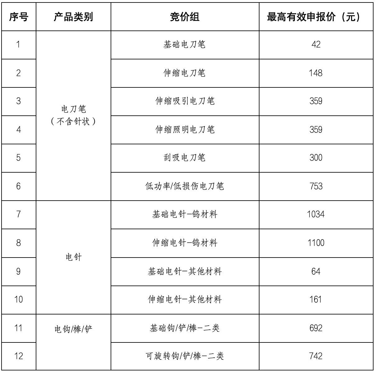 相較11月發(fā)布的征求意見稿,正式采購文件的競價組從32個減至24個。例如基礎(chǔ)電刀筆、伸縮電刀筆等均單獨成組,不再區(qū)分有無涂層。