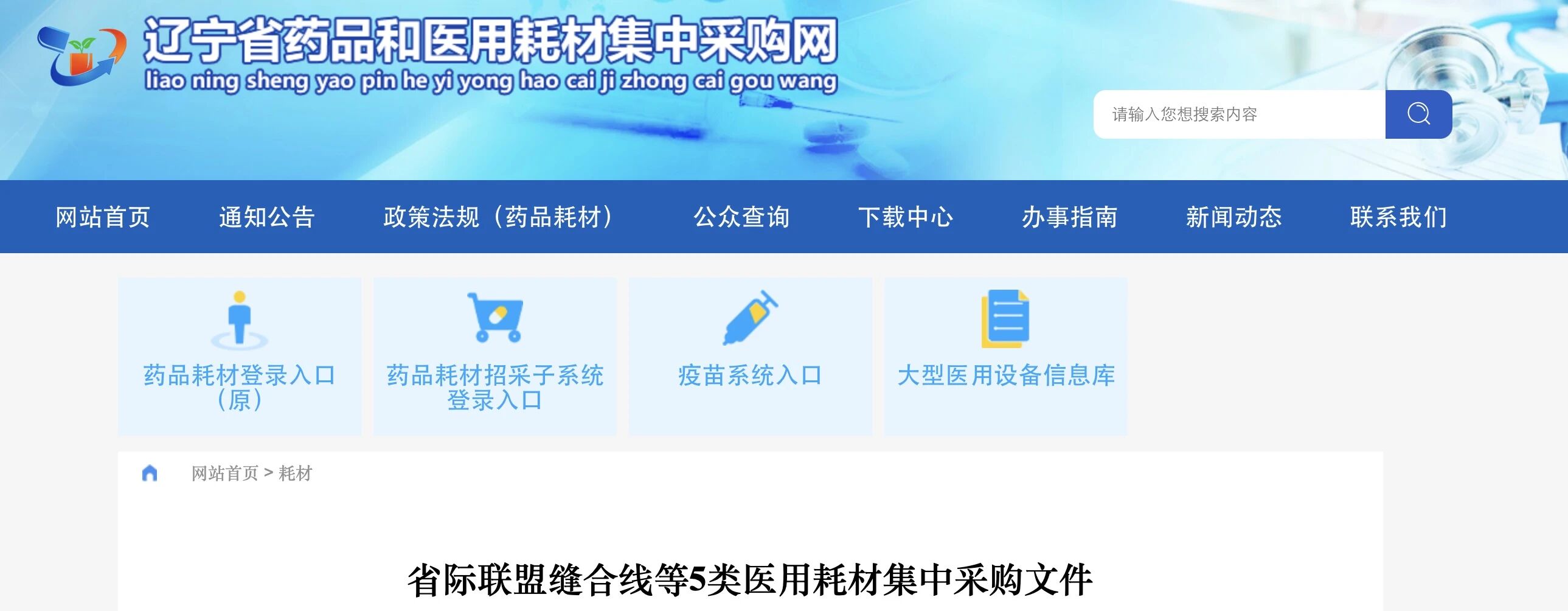 近日,遼寧省藥品及醫(yī)用耗材集中采購(gòu)網(wǎng)發(fā)布《省際聯(lián)盟縫合線等5類醫(yī)用耗材集中采購(gòu)文件》。