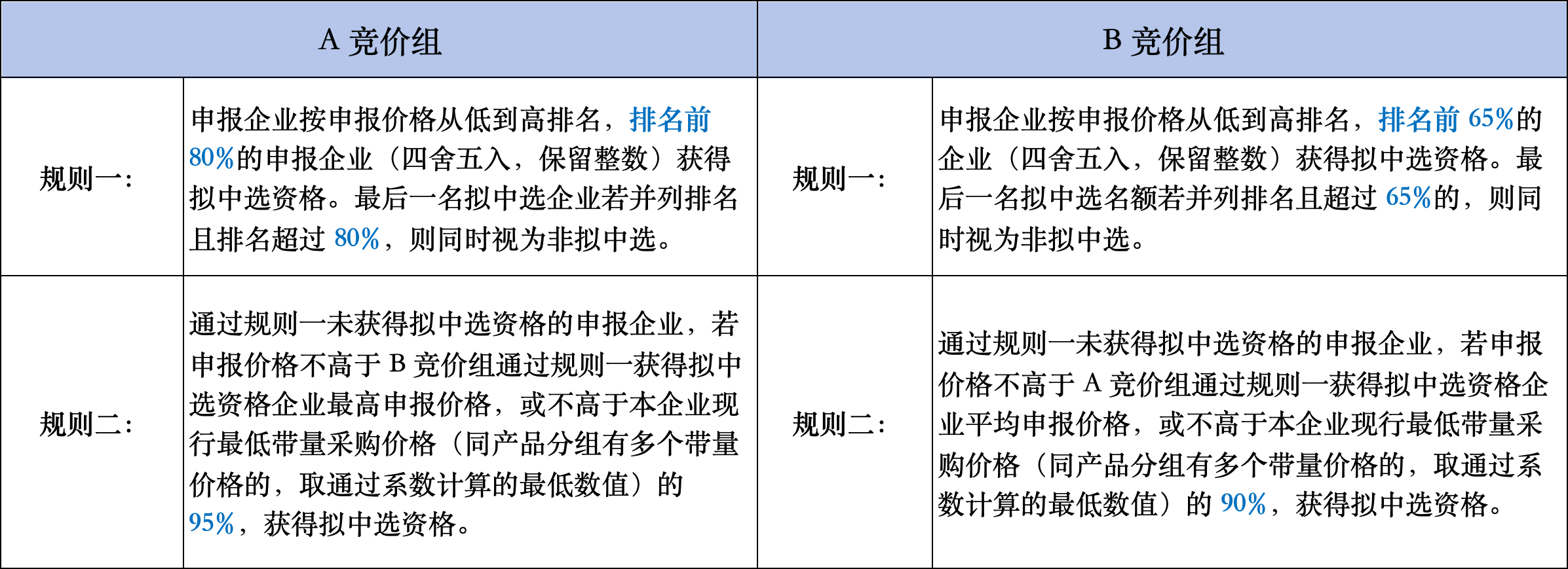 此次共設(shè)置4個(gè)擬中選規(guī)則,其中規(guī)則一、二為中選規(guī)則。同一產(chǎn)品組中,若申報(bào)企業(yè)擬中選,則申報(bào)企業(yè)在該產(chǎn)品分組的所有產(chǎn)品均為擬中選。具體如下: