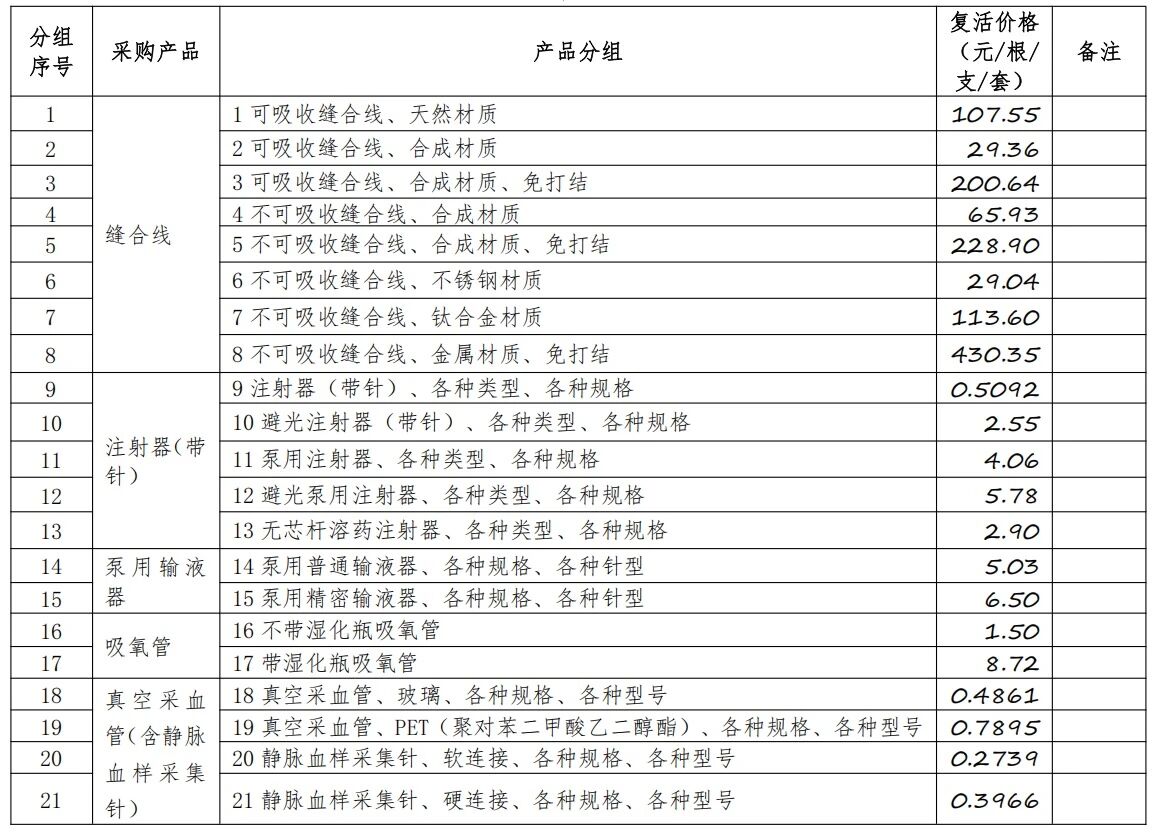 上文提到調(diào)整最高限價(jià)的兩類產(chǎn)品,其對(duì)應(yīng)的復(fù)活價(jià)格也進(jìn)行了調(diào)整。“可吸收縫合線、天然材質(zhì)”的從73.83元調(diào)至107.55元;“不可吸收縫合線、合成材質(zhì)”從40.73元調(diào)至65.93元。