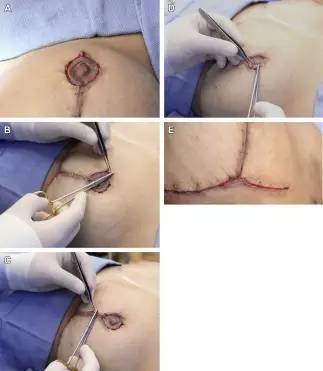 在乳房縮小術(shù)中,可采取單向或雙向縫線以完成切口縫合(圖 3)。
