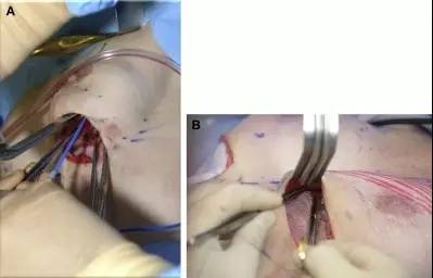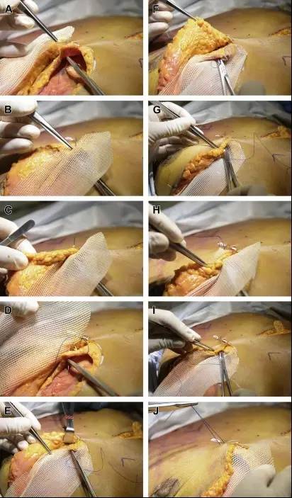 圖 6 倒刺縫線在乳房內(nèi)支架及組織固定操作中的應用