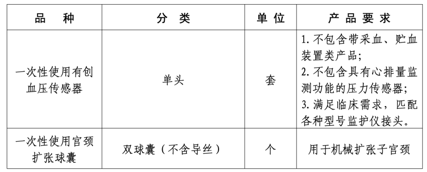 具體包括一次性使用靜脈營養袋、一次性使用血氧飽和度傳感器、一次性使用壓力延長管、注射器、一次性使用有創血壓傳感器、一次性使用宮頸擴張球囊、一次性使用輸尿管導引鞘、一次性使用陰道擴張器、Y接頭、真空采血管、一次性使用高壓造影注射器及附件、輸液接頭、環柄注射器、三連三通醫用耗材、一次性活檢針、一次性包皮切割吻合器等16類耗材。