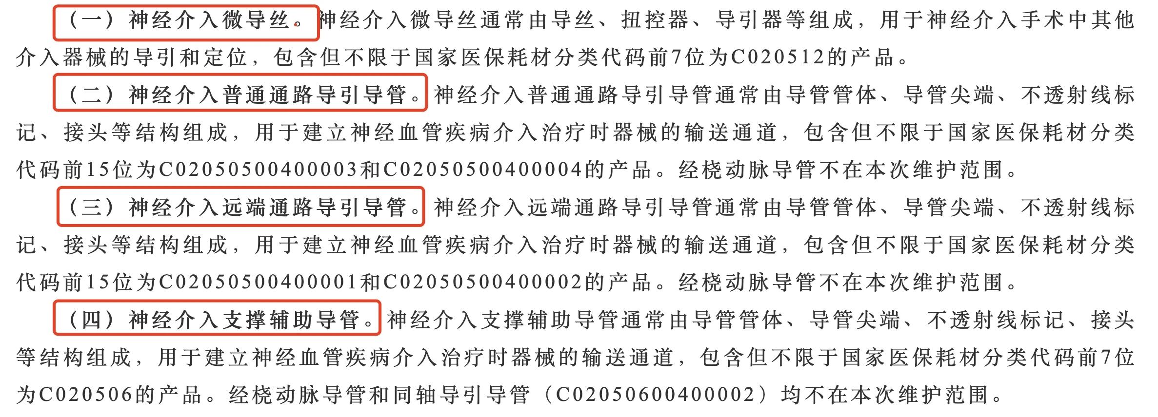 除了上述品類外,深圳在10月31日啟動神經介入微導絲、神經介入普通通路導引導管、神經介入遠端通路導引導管、神經介入支撐輔助導管四類耗材產品的信息維護工作,具體如下:
