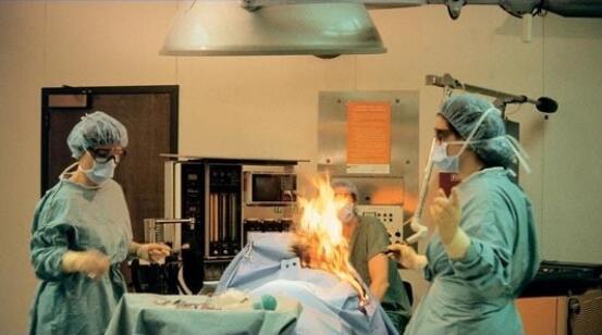 預防環境火警:避免在有易燃易爆和揮發性氣體、高氧環境環境中使用電刀(尤其是胸部或頭部手術),在氣道部位使用時應暫時移開氧氣。(下圖來自網絡)