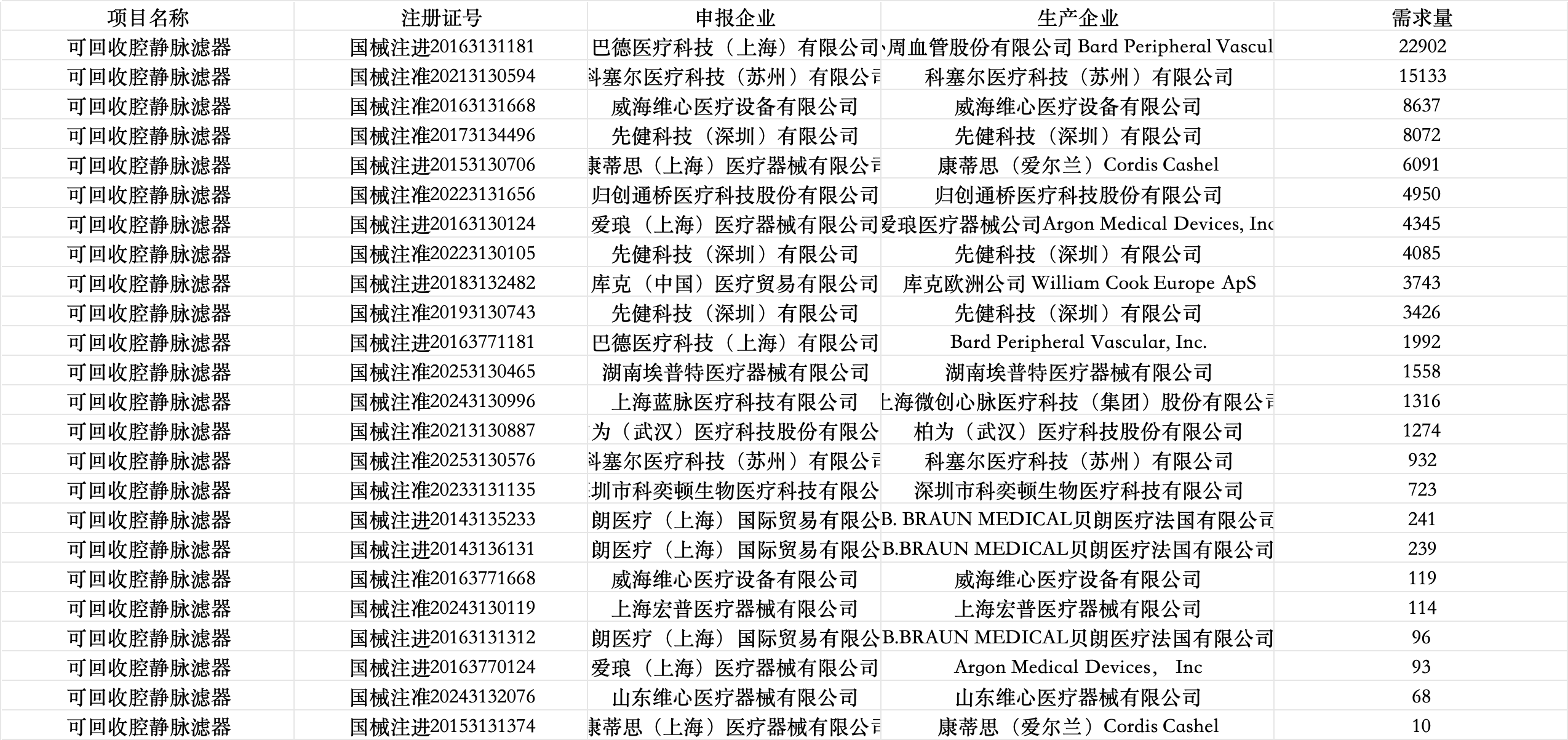 《公告》還披露了三類產品的采購需求量表:其中腔靜脈濾器90167個、射頻消融電極52218個、微波消融電極65402個。