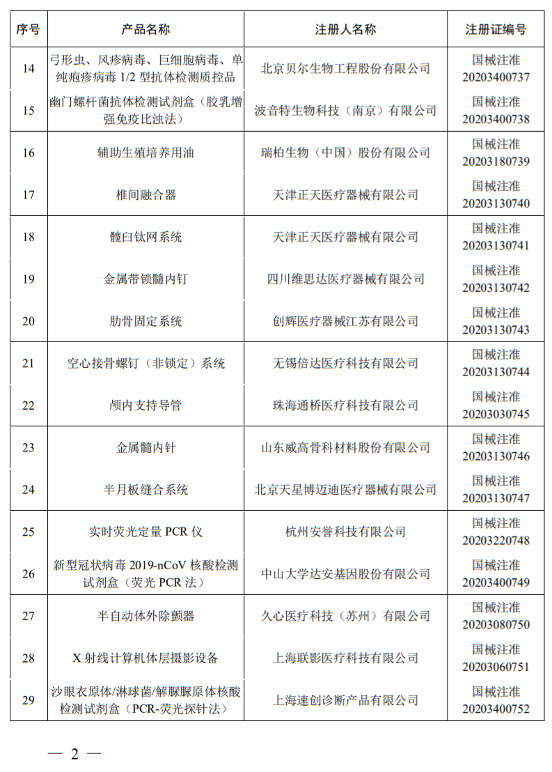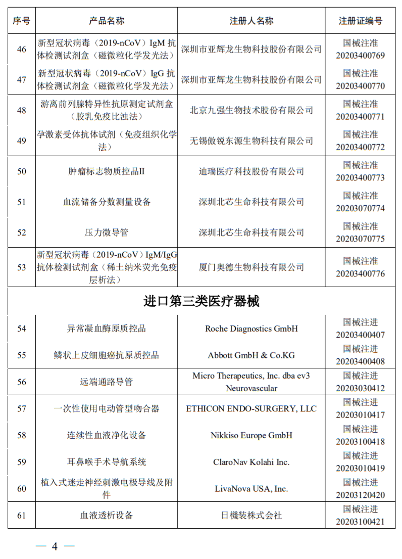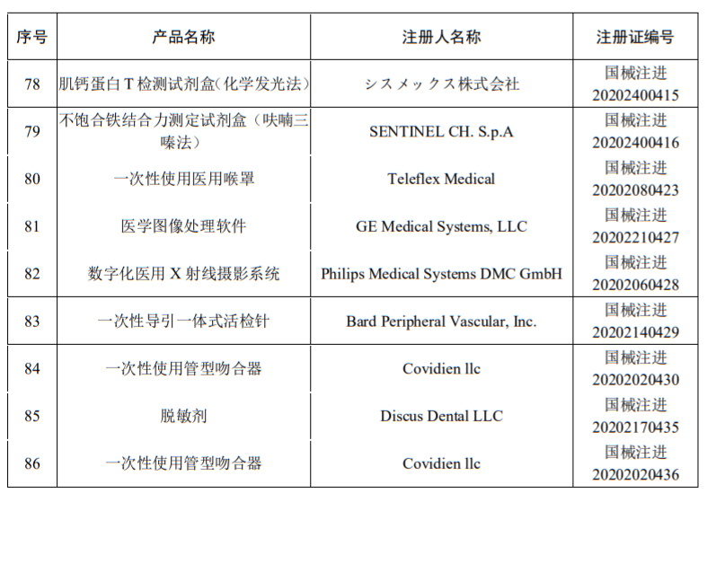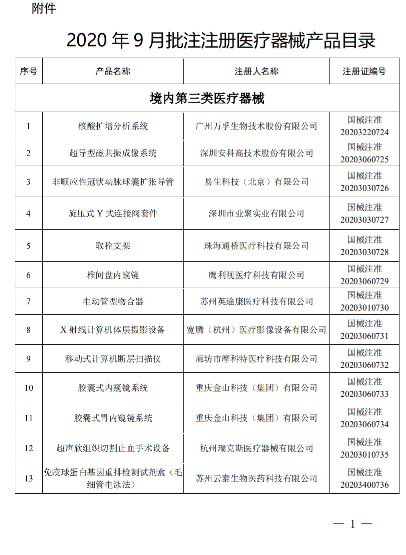 醫藥網10月27日訊 10月23日,國家藥監局發布《國家藥監局關于批準注冊86個醫療器械產品公告(2020年9月)(2020年第113號)》。