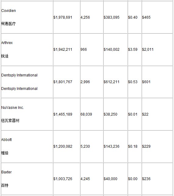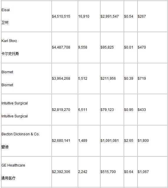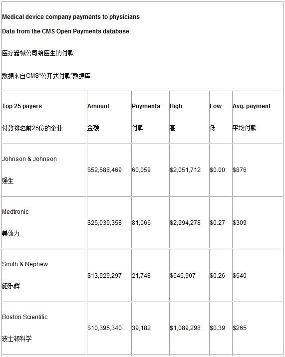 以下為付款排名前25位的醫(yī)療器械公司數據: