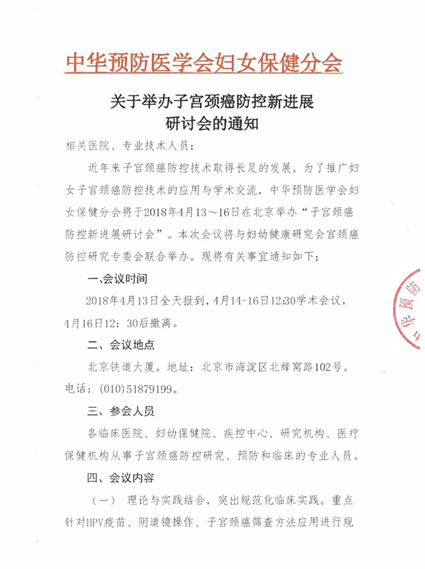宮頸癌防控新進(jìn)展研討會(huì)通知