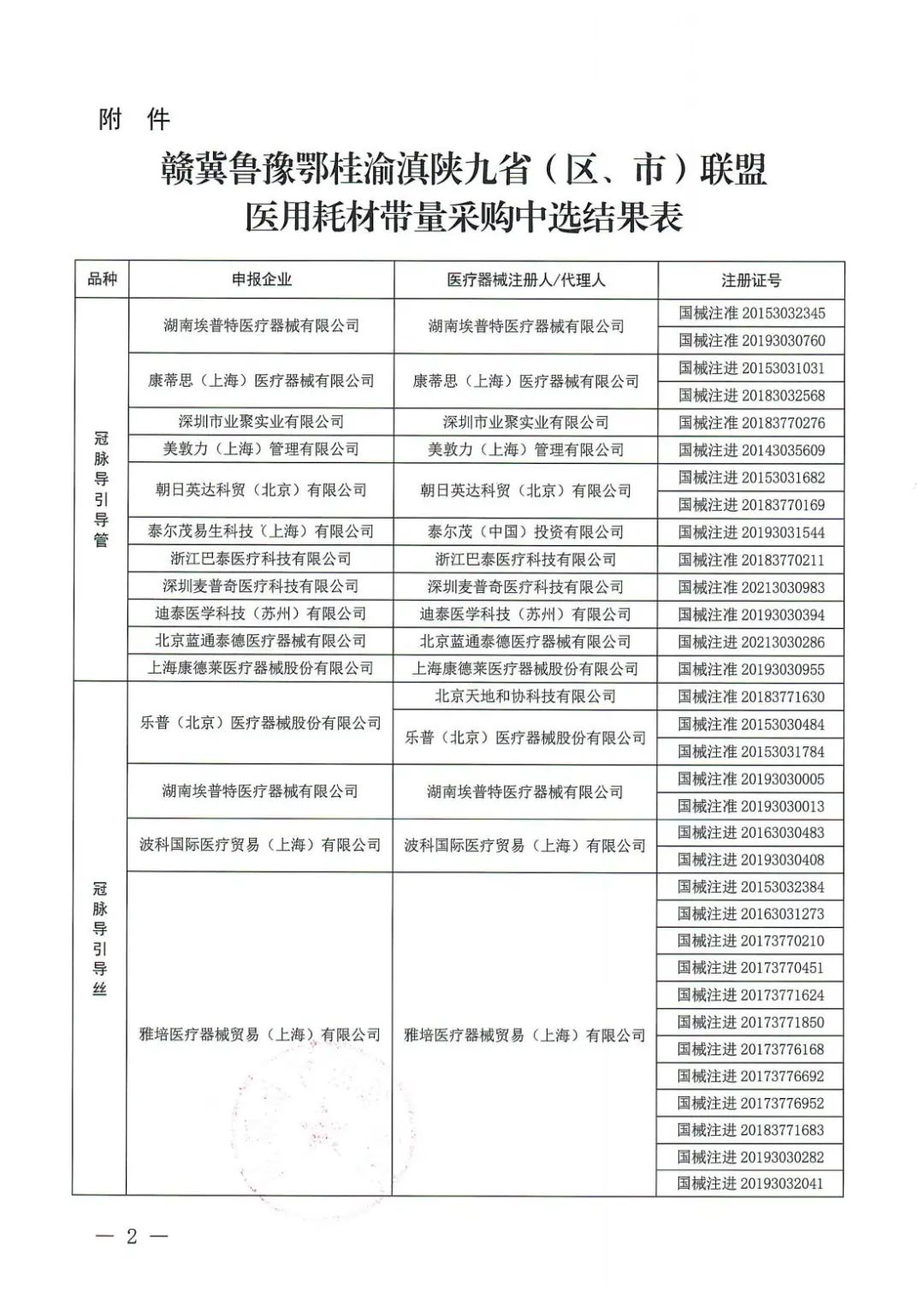 九省聯盟帶量采購結果公布,樂普、埃普特、康蒂思...