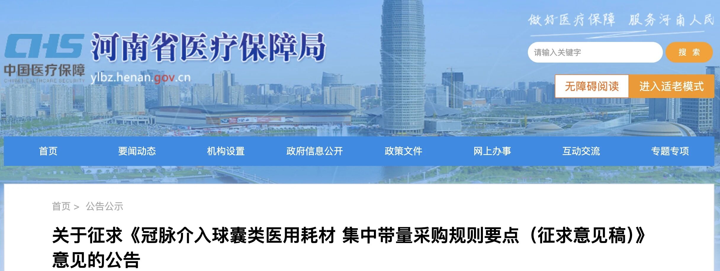 9月11日,河南醫(yī)保局發(fā)布《冠脈介入球囊類醫(yī)用耗材 集中帶量采購規(guī)則要點(diǎn)(征求意見稿)》(完整見文末),意見征求截止時(shí)間為9月15日18時(shí)。