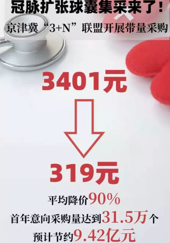 3月25日,據(jù)人民日?qǐng)?bào)消息,京津冀“3+N”聯(lián)盟冠脈擴(kuò)張球囊類(lèi)醫(yī)用耗材帶量聯(lián)動(dòng)采購(gòu)中選結(jié)果在天津公布,經(jīng)過(guò)本次集采,聯(lián)盟地區(qū)冠脈擴(kuò)張球囊價(jià)格從均價(jià)3401元下降至319元,與2020年相比,相同企業(yè)的相同產(chǎn)品平均降價(jià)90%。