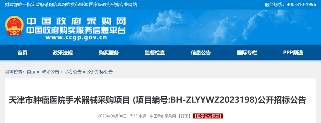 近日,中國政府采購網(wǎng)發(fā)布了“天津市腫瘤醫(yī)院手術(shù)器械采購項(xiàng)目”的招標(biāo)公告。