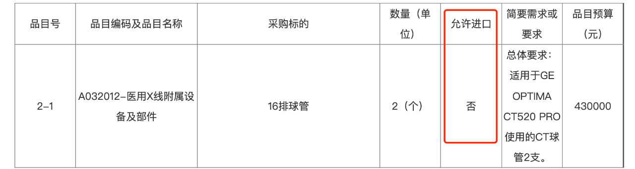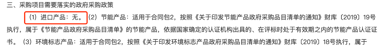 其中在采購(gòu)需求上,公告明確要求不允許采購(gòu)進(jìn)口設(shè)備。