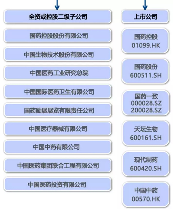 國務院國資委直屬的大型央企,2017年集團營業收入3500億元,位列2017世界500強榜單的第199位,也是目前國內最大的醫藥企業集團公司,其營收和規模超過排在第二、第三位的華潤和上藥之和。